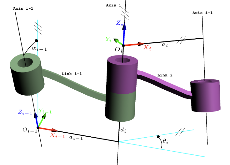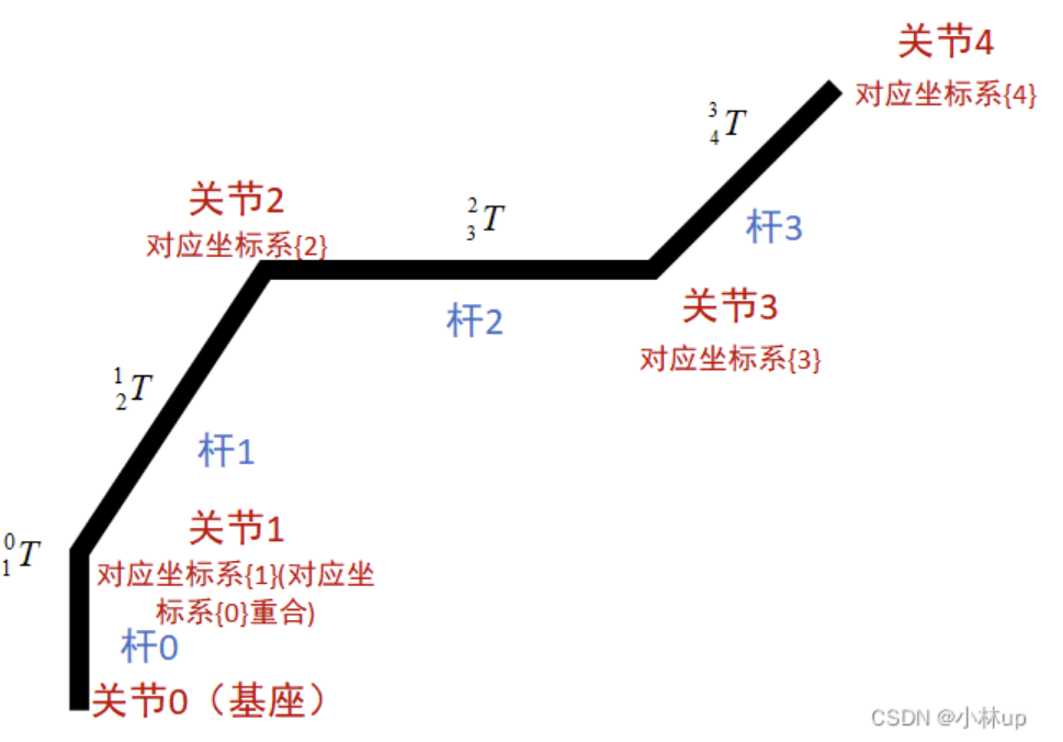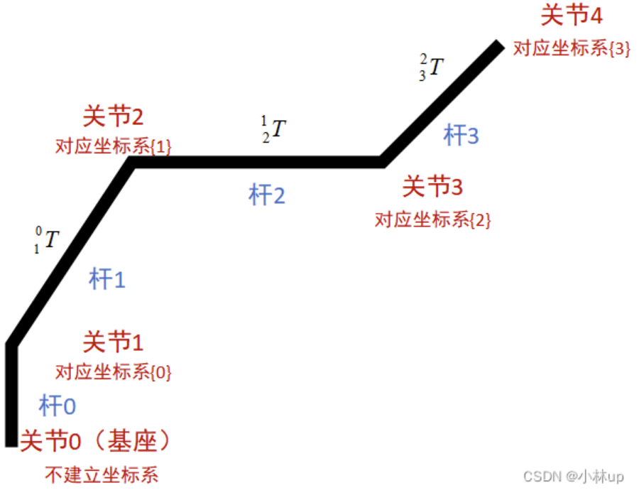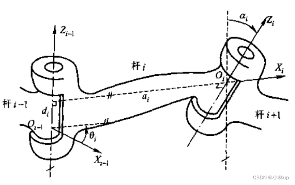 - 杆 i 的近端是关节 i,远端是关节 i+1(关节 i 轴称为杆 i 驱动轴,关节 i+1 轴称为杆 i 传动轴)