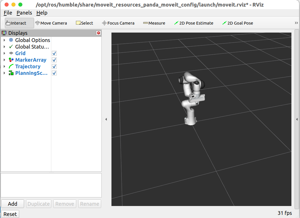 ros2 launch moveit_resources_panda_moveit_config demo.launch.py启动机械臂演示: